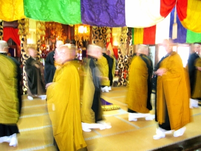読経中は写真のように、道場の中をぐるぐると右回りに巡ります。