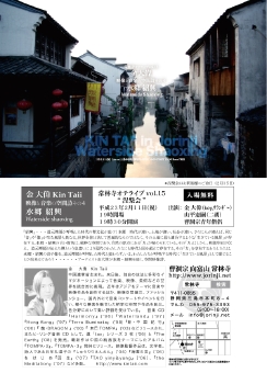 ご予約は締め切りました。当日券あります(満席の場合は立見となります)。